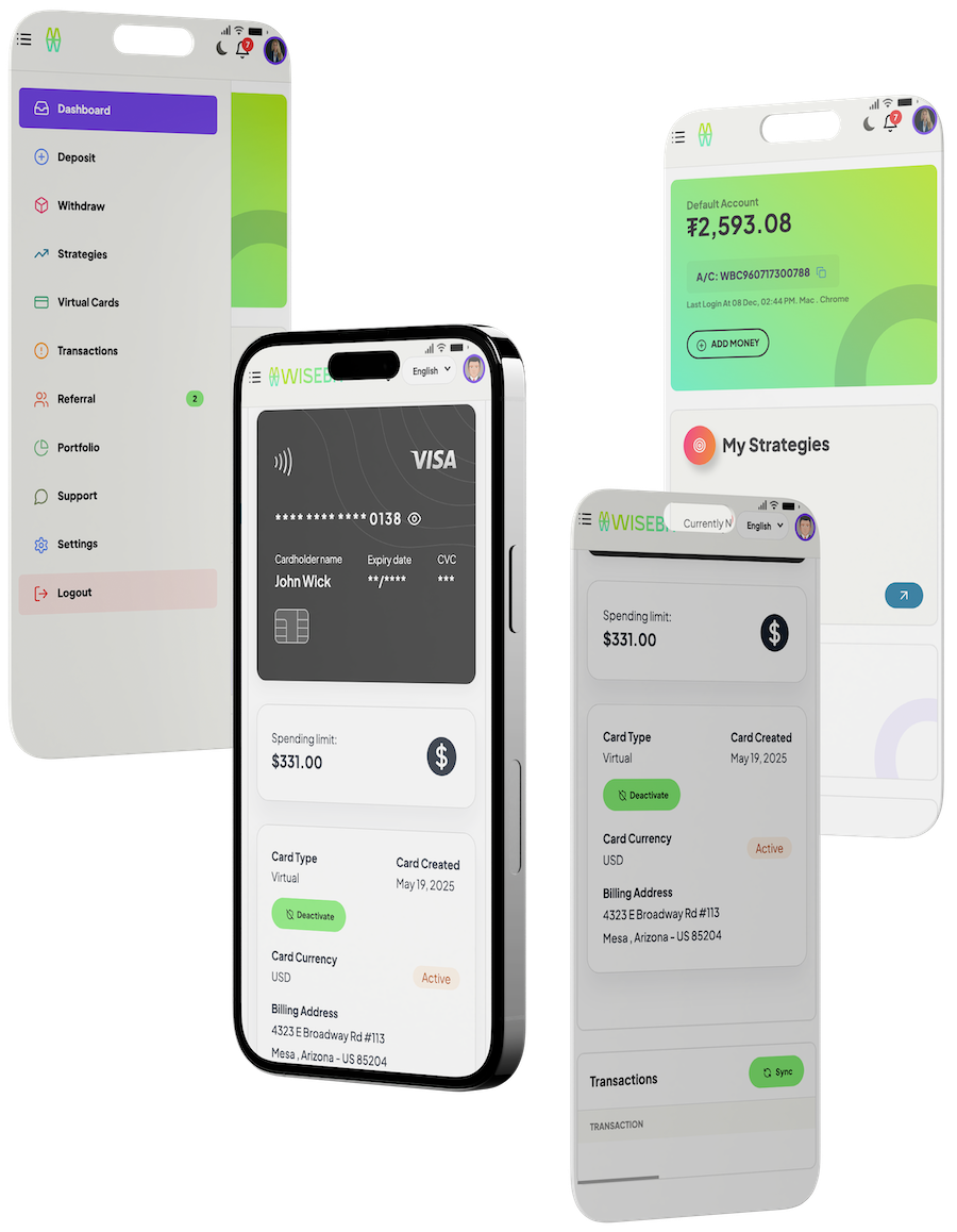 Наша экосистема делает процесс использования максимально комфортным: пополняйте карту так, как вам удобно, управляйте балансом в приложении, отслеживайте операции и настраивайте безопасность. WISEBIT Cards создаёт единый, понятный и гибкий платёжный опыт, который подходит современному ритму жизни.